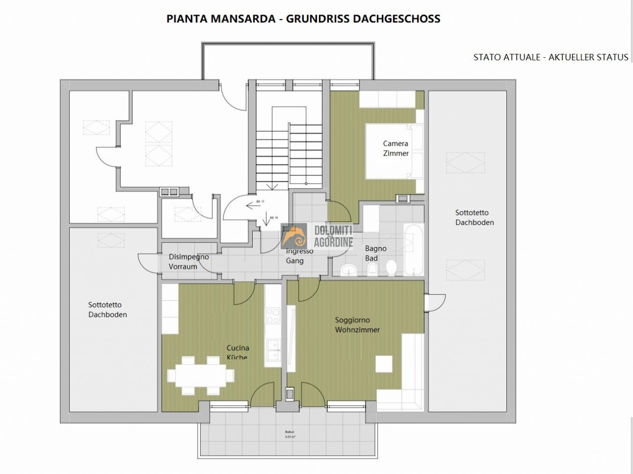 Indirizzo : Via Gebirgsjäger, 28 - Brunico Brunico, Via Gebirgsjäger n° 28, in posizione centralissima, a soli 150mt dall' Ospedale e 350mt dal centro pedonale di Brunico. La posizione è strategica e si trova a soli 4km dalla partenza degli impianti del Dolomiti Superski di Plan de Corones. Ottimo sia per residenza, investimento che come casa vacanze, l'Agenzia Dolomiti Agordine propone in vendita luminoso attico al terzo piano di una palazzina ben tenuta, di sole 9 Unità. L'abitazione è composta da un ampio ingresso, una cucina/pranzo, un ampio soggiorno utilizzabile come camera da letto principale, un' altra camera da letto, bagno completo con doccia + vasca e un ampio balcone verso sera. Ai lati della porzione residenziale trovano spazio 2 ampi sottotetti per ulteriori posti letto oppure per spazi ad uso soffitta. Completano l'offerta, una cantina ed un posto auto coperto ad uso esclusivo al Piano Seminterrato. Ulteriori posti auto condominiali non assegnati all'esterno. Grazie alla fornitura di acqua calda proveniente dagli impianti Comunali della città di Brunico di teleriscaldamento, abbiamo un notevole risparmio dal punto di vista energetico per quanto riguarda il riscaldamento dell'appartamento; Classe energetica: A1. Meravigliosa opportunità di investimento a 360°. Per maggiori info e visite contattaci al 3465365478